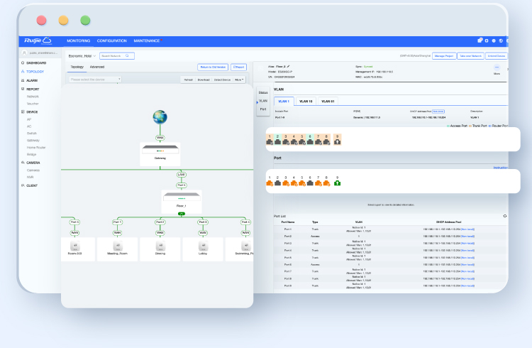 2.Ruijie Networks offers free lifetime service of all Ruijie Cloud basic features for all Ruijie cloud-managed supported networking devices. Ruijie Networks reserves the right to charge for advanced features in the future. The service scope definition is subject to change. Ruijie Networks reserves the right of final decision.